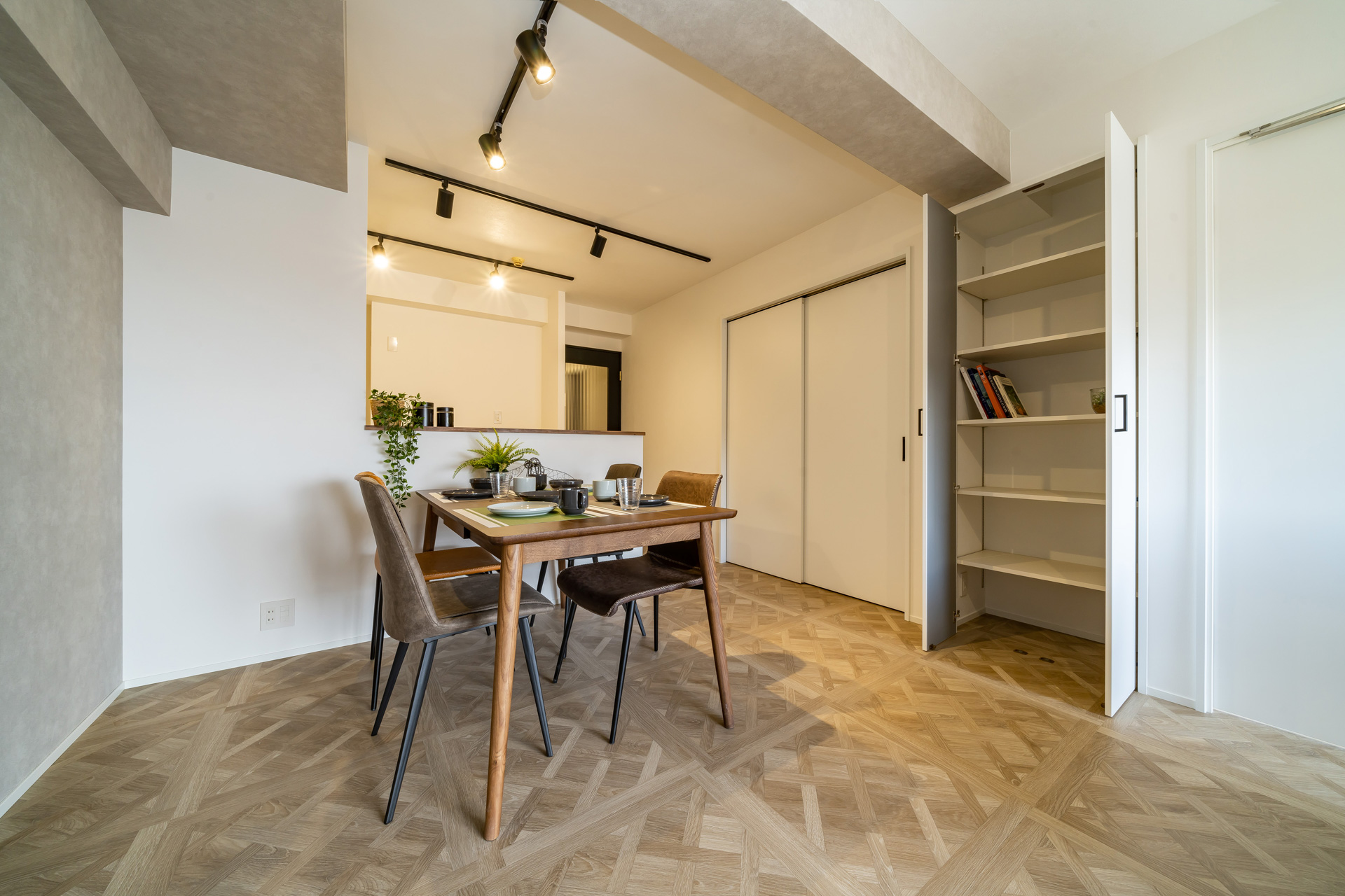 キッチンワークしながらご家族との会話を楽しめる対面キッチン。白を基調としたPanasonicの広々システムキッチンを施工しました。