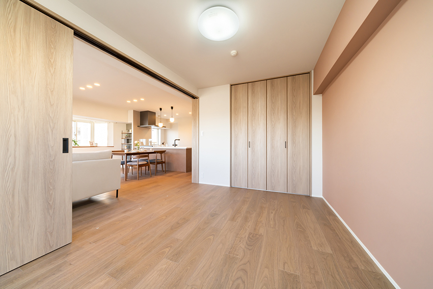 扉を開ければ一体空間として、閉じれば個室としても使えます。暮らしに合わせて表情を変えるフレキシブルな一室です。