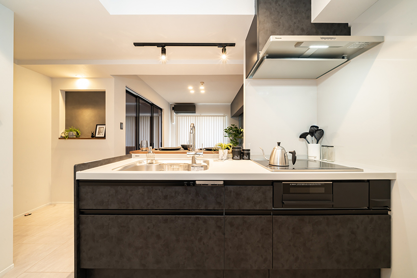 - 吊戸棚をなくし、開放感のあるキッチンに-
